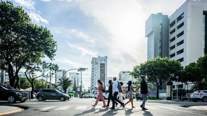 City residents walking